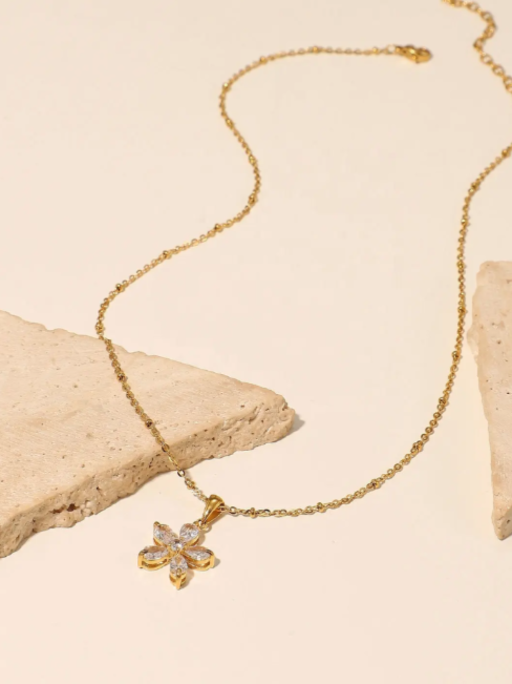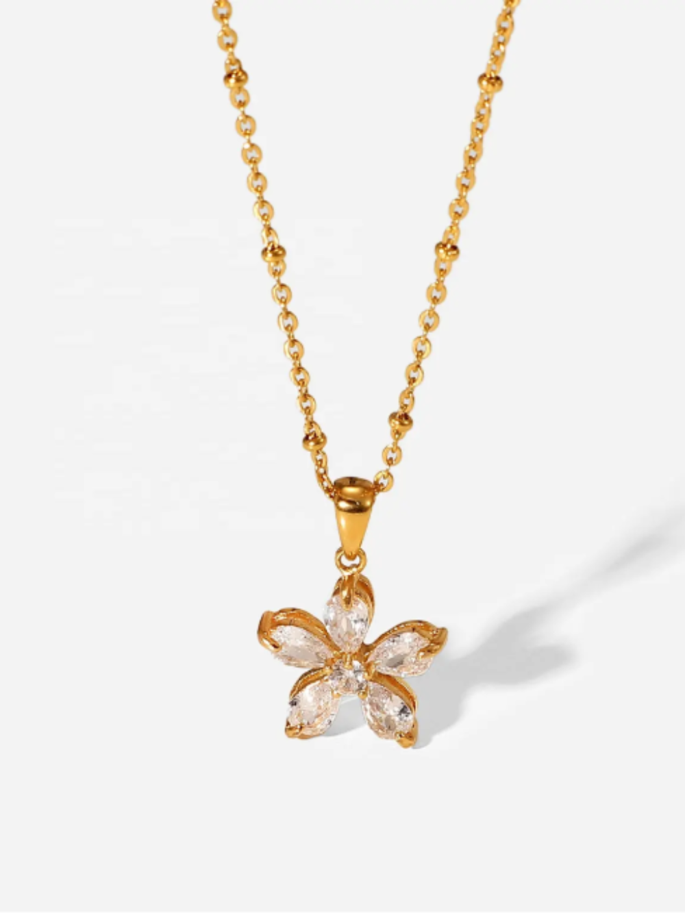 Style our 18K Gold Plated Dainty Flower Pendant. Featuring a cute, minimal and modern design made of 316L stainless steel and coated with 18K PVD gold for a sweat and waterproof finish.